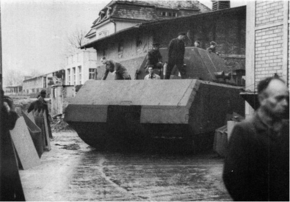 1943年1月开始了仿制品制作,1943年12月完成1号,1944年4月完成2号,炮塔上搭载了128毫米主炮(分离装填弹35发量的弹药,这和曾是猎虎式驱逐战车主炮一样的,据说在4km的距离内击溃了谢尔曼)作为辅助武装的75mm炮(虽然说是辅助武装,但它是4号战车的主炮,搭载弹数足足有250发)和1支MG34。武装一开始讨论过很多种,但出乎意料的是鼠式超重型坦克内部非常狭窄,所以定为128mm/75mm,128mm炮弹也感觉威力不足,所以计划后安装150mm级的巨炮。