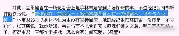 更是被爆出林韦君曾探班言承旭,但是都被经纪人给否认了。
