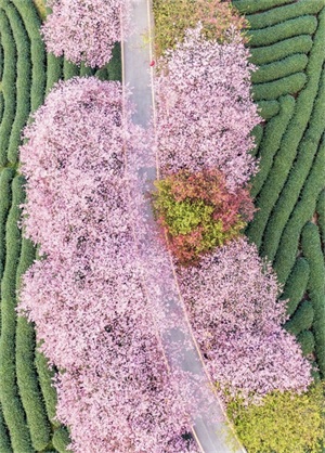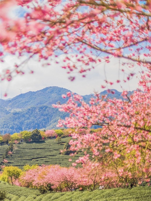 这里规模是比日本大5倍的万亩樱花,早年台农“有心插柳”,后来当地人“用心栽培”,让永福的万亩荒山摇身一变,成为茶香四溢的“大陆阿里山”,从此也埋下了一个茶绿樱红的娇艳春天。