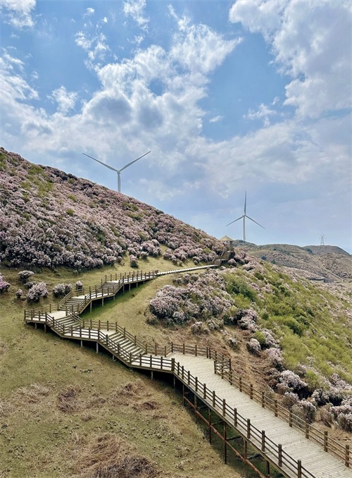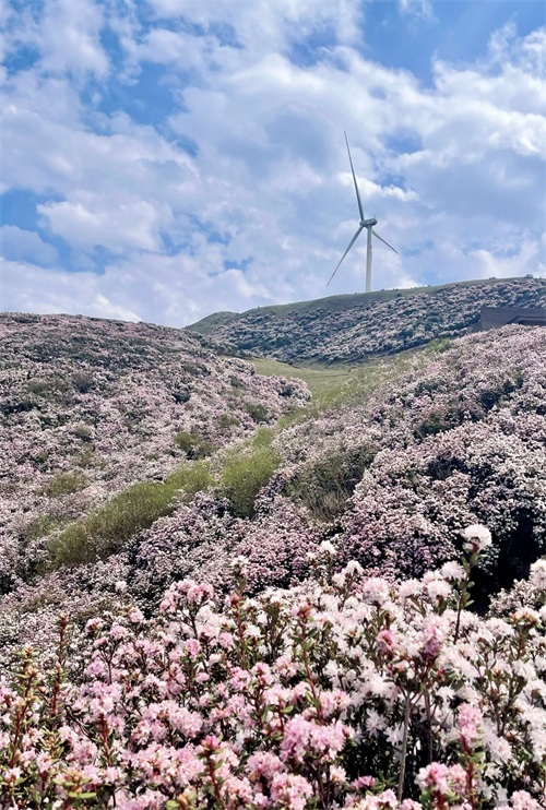 乌蒙山的杜鹃花与百里杜鹃有所不同,这里一眼望去全是低饱和的粉红色杜鹃花,没有十分艳丽,却也足够惊艳每一位来到这里的人。