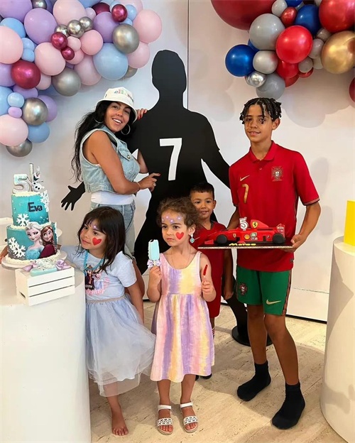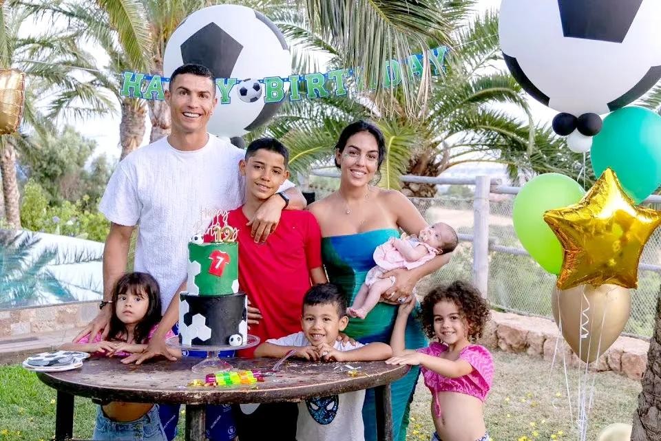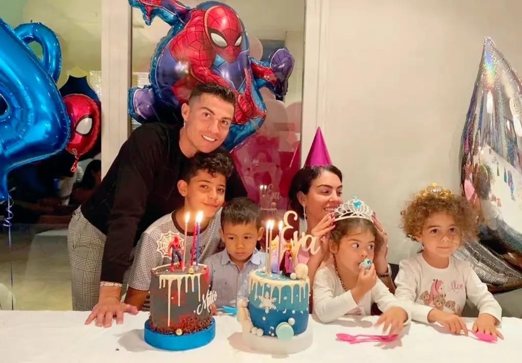 C罗和女友 乔治娜·罗德里格斯一起庆祝孩子的生日。