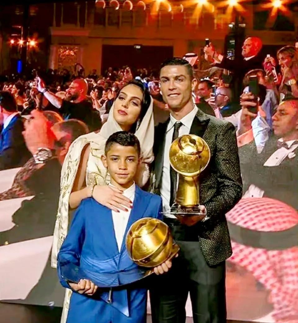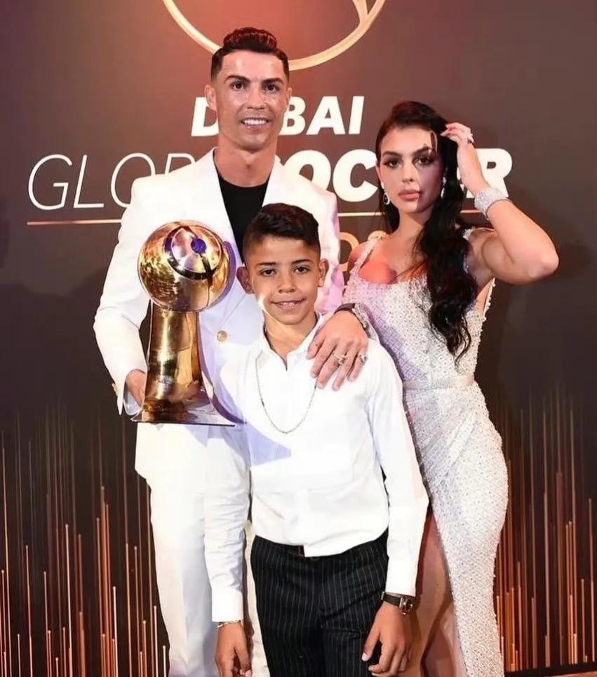 C罗带大儿子迷你罗和女朋我一起参加领奖活动