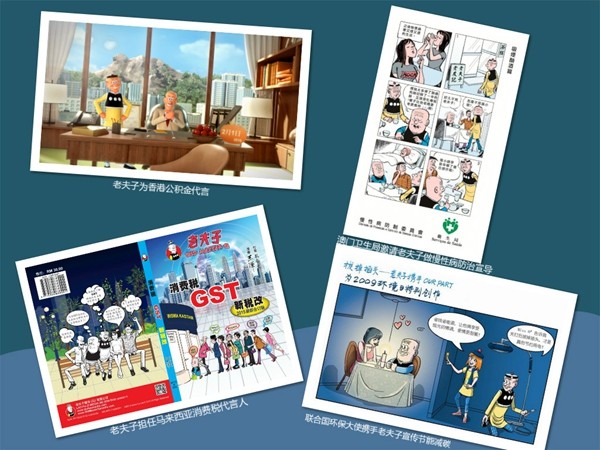 《老夫子》是唯一风行华人社会超过五十年之久的漫画人物。陪伴大家共同成长且一代传着一代,已成为大家共同的记忆。大家对老夫子与日俱增的信赖感,也使老夫子成为最有说服力代言人的不二人选。老夫子代言案例至今已遍布华人圈各地。如中国大陆的垃圾分类倡导、节能减碳倡导;港澳地区的澳门卫生局代言、香港公积金计划局广告代言;新马地区的国家银行、教育部代言等等。(章廉 综合整理)