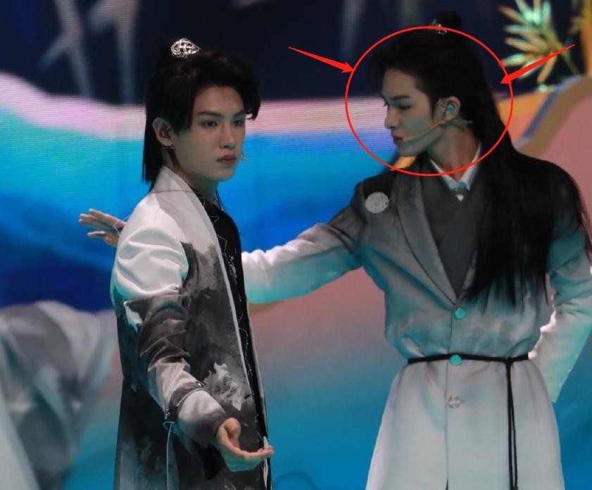 黄明昊跟朱正廷站在一起的时候,相比之下有点不像古人。反而是朱正廷非常有一种古人的感觉,不管是发型还是服装,都十分适合他。