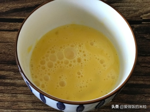⑤、把一个鸡蛋打入碗中,用筷子搅打成蛋液。