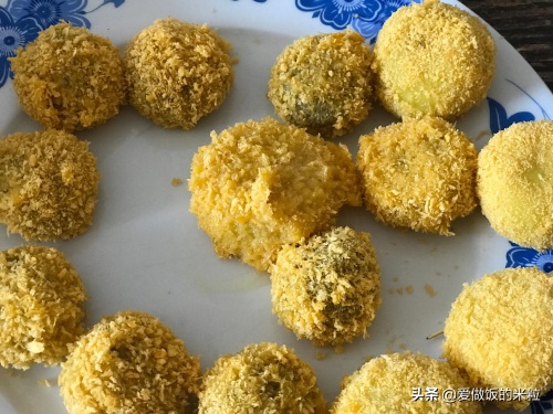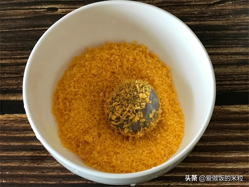 ②、如果家里没有面包糠,不用蘸面包糠也可以。煮完了以后,在汤圆上面扎一个小孔,直接下油锅炸就可以了。但是蘸面包糠炸出来的汤圆外皮更酥脆,外观更漂亮。