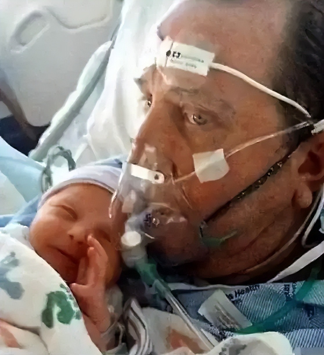 第八个:一位患有癌症的父亲,在孩子出生45分钟后离开了,他完成了他的心愿,亲手抱到了孩子。