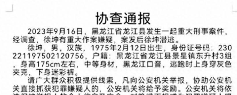 齐齐哈尔重大刑案新进展:徐坤已落网,原因疑是前妻有新欢