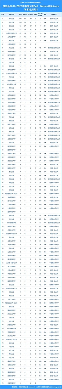 中国高校CNS论文排名发布,这些大学表现突出,不输985名校
