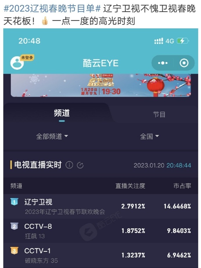 事实证明,好看就是硬道理。今夜辽宁春晚收视喜人,不但力压央视一套稳居第一,市场占有率也稳定在15%左右,高峰期甚至在20%上下。
