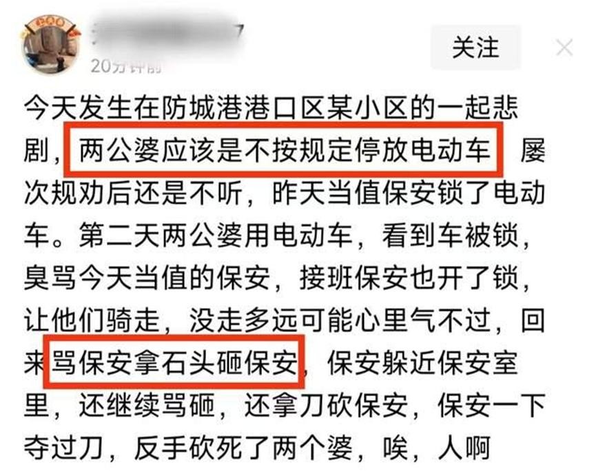 昆山龙哥案再现!广西防城港市一保安持刀杀害一对夫妻,触目惊心