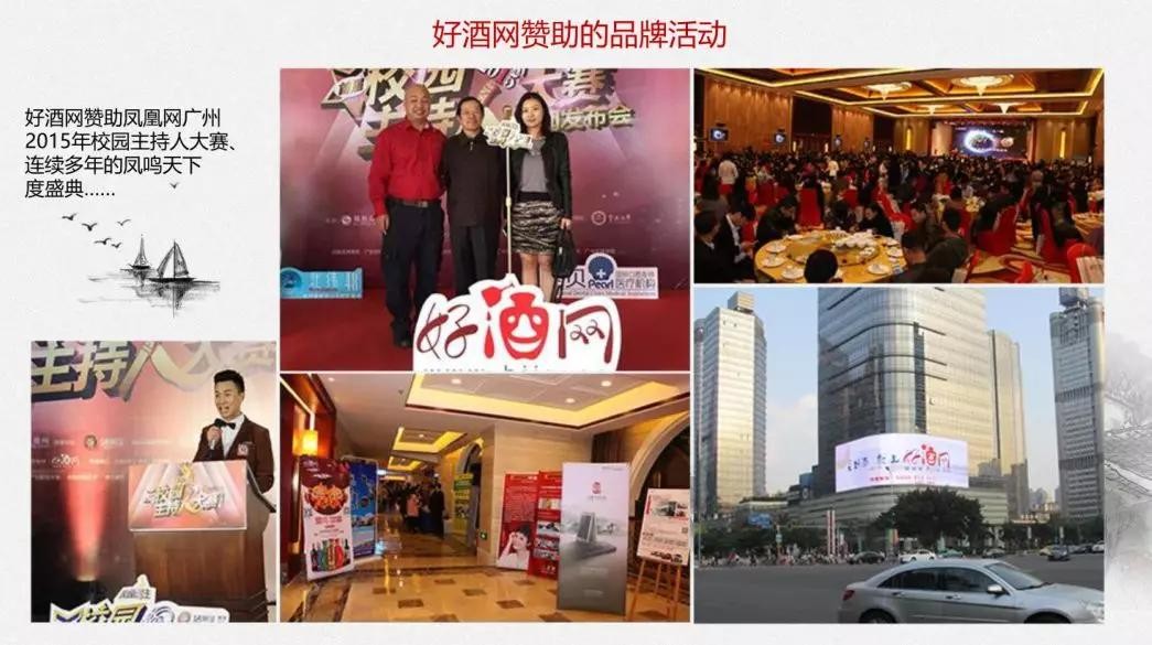 自成立以来,好酒网在各大媒体、户外、的士车、地铁等多处投放广告,赞助大型活动以打造品牌。
