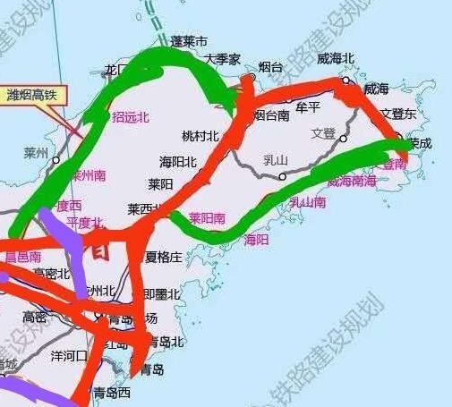 目前烟台市已经可以通过青荣城际线南下经过青岛到达南部各城市,经过青荣城际也能达到,也可以通过青荣高铁从莱西接潍莱高铁到达省会济南等城市;’待潍烟高铁和荣莱高铁建成后,烟台市辖区内的高铁网将彻底形成,从下图可以看出焦作市的大致高铁方向,注意想看详细的路线要看国家发布的,下图仅仅表示大致方向,不代表实际为位置。(红色是已通的高铁线路,绿色是表示在建的高铁线路,紫色表示规划高铁的线路)