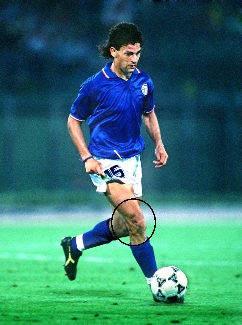 罗伯特.巴乔的整个职业生涯仿佛是一部励志传奇故事。巴乔18岁即迎来第一次重大伤病考验,腿上因此留下了220针的伤痕,一度被告知无法继续踢球了,但巴乔奇迹般的站起来了。在其后的生涯中他又经历了一次次的重伤,并多番被排挤出国家队的名单,但他“拖着一条半腿”(巴乔自传语)却用球场上的表现为自己争取蓝衣军团的一席之地,并最终在98年完成了“点球的救赎”。