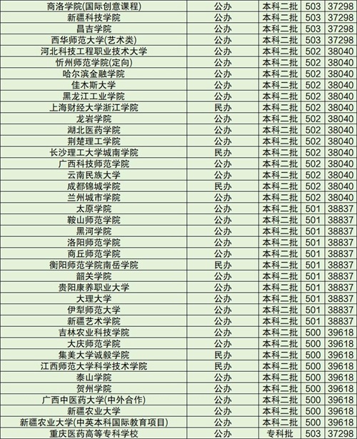 下面是文科500分到550分能上的所有大学名单汇总,数据较多,请滑动查看。