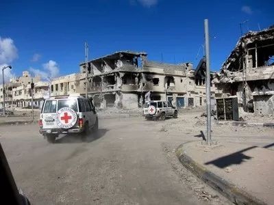 红十字国际委员会的工作人员在利比亚苏尔特市评估损毁情况。