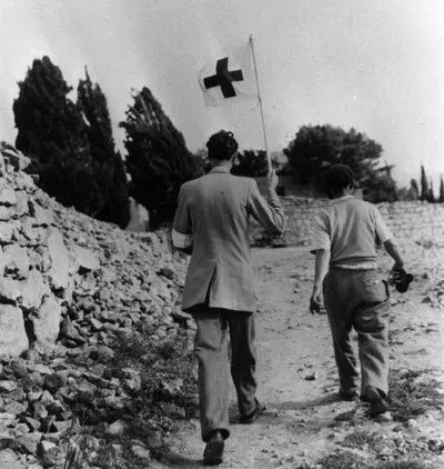 耶路撒冷,红十字国际委员会的一线代表穿越前线去收敛战亡士兵的遗体。