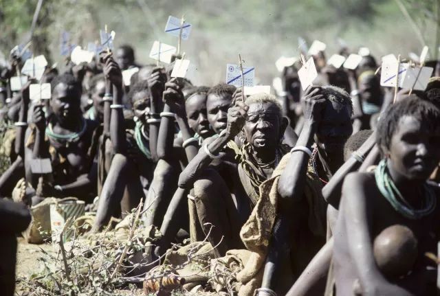 苏丹那鲁思,1.5万名流离失所的托普萨人等待领取红十字国际委员会发放的援助物资。