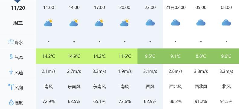 今天是2024年11月20日,宜昌天气以多云为主,白天最高气温15℃,最低气温8℃,微风,空气湿度87%,体感温度9.8℃。市民朋友们请注意保暖,早晚温差较大,适时增减衣物。