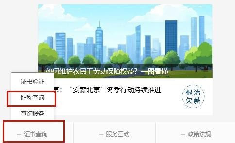 在人力资源和社会保障部微信公众号,可通过访问菜单栏“证书查询”—“职称查询”进入职称查询平台