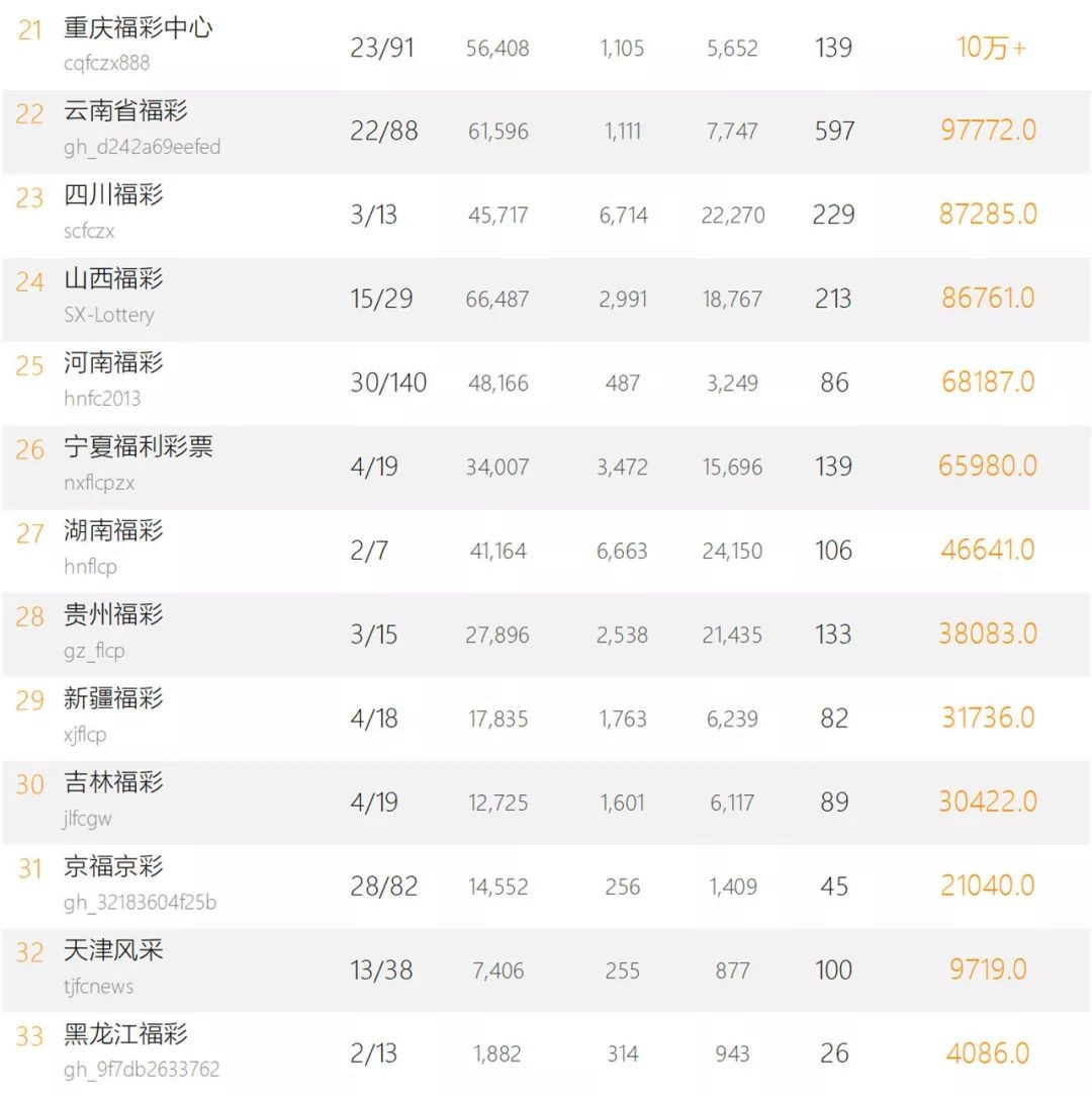 福彩新媒体影响力排行榜