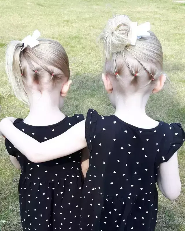 如果家里有那个宝贝的话,扎成这样的“姐妹花”出门是不是更加吸引人呢!