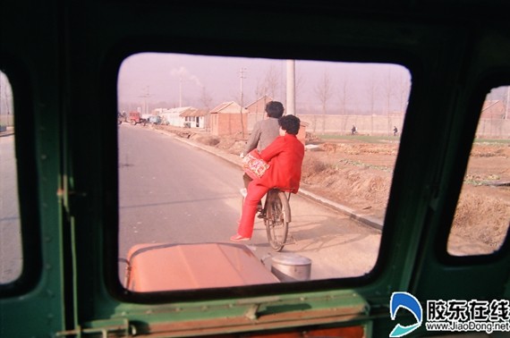 回娘家。1985年招远郊区,一对新婚的小夫妻骑自行车回娘家,新娘子胳膊上的红包裹,装满了情谊是那个时期最流行的。