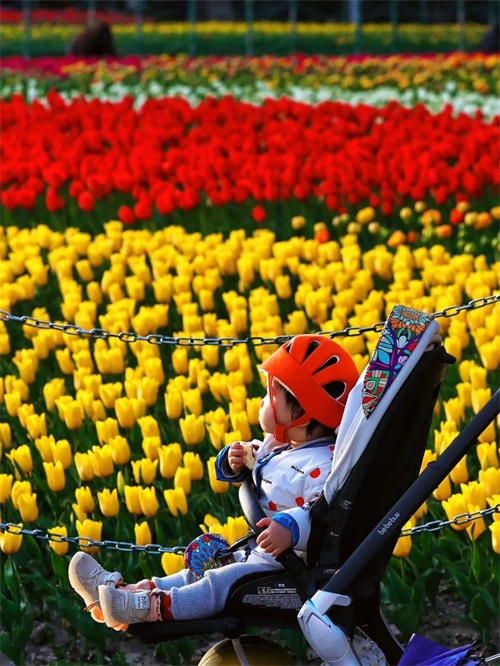 三处观赏点均以性状各不相同的郁金香为基础,依据花色、花期、株高等特性进行色块的调整,搭配“一路生花”“花开满地”“花漾时光”等不同的花海设计主题,在呈现出形色各异的郁金香花海的同时,更是达到“一步一景、景随身行、景景动人”的视觉体验。