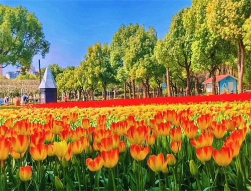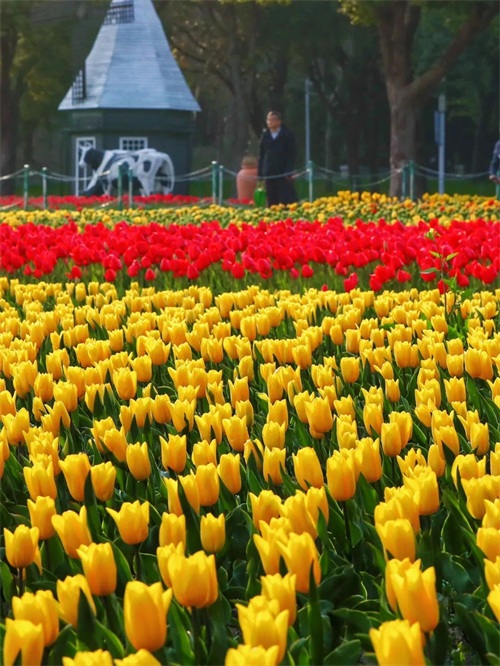 今年大宁公园引进了26个品种、50万株不同花期的郁金香,主要分布在园内罗马广场、北门广场和南国风光三处标志性景点,种植面积超10000平方米。