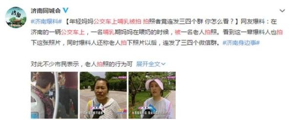 最近有市民爆料称:在济南的一辆公交车上,一名哺乳期妈妈在喂奶的时候,被一名老人拍照。