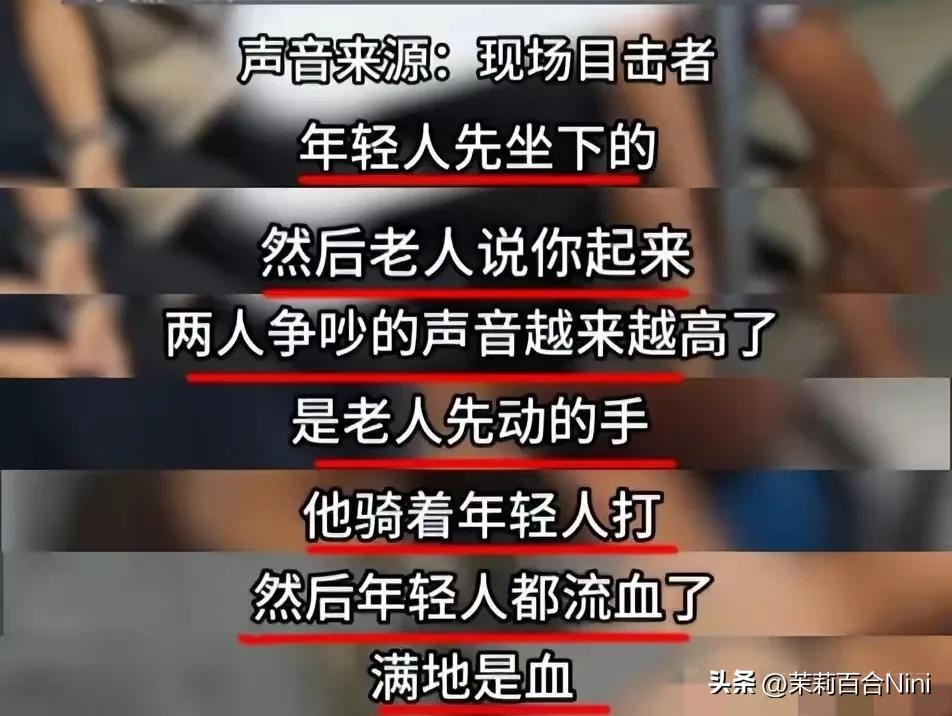 拍摄事情的目击者表示是小伙先坐的座位,老人说让小伙起来,小伙拒绝让座两个人发生争吵,老人先动的手,还骑在小伙身上打。