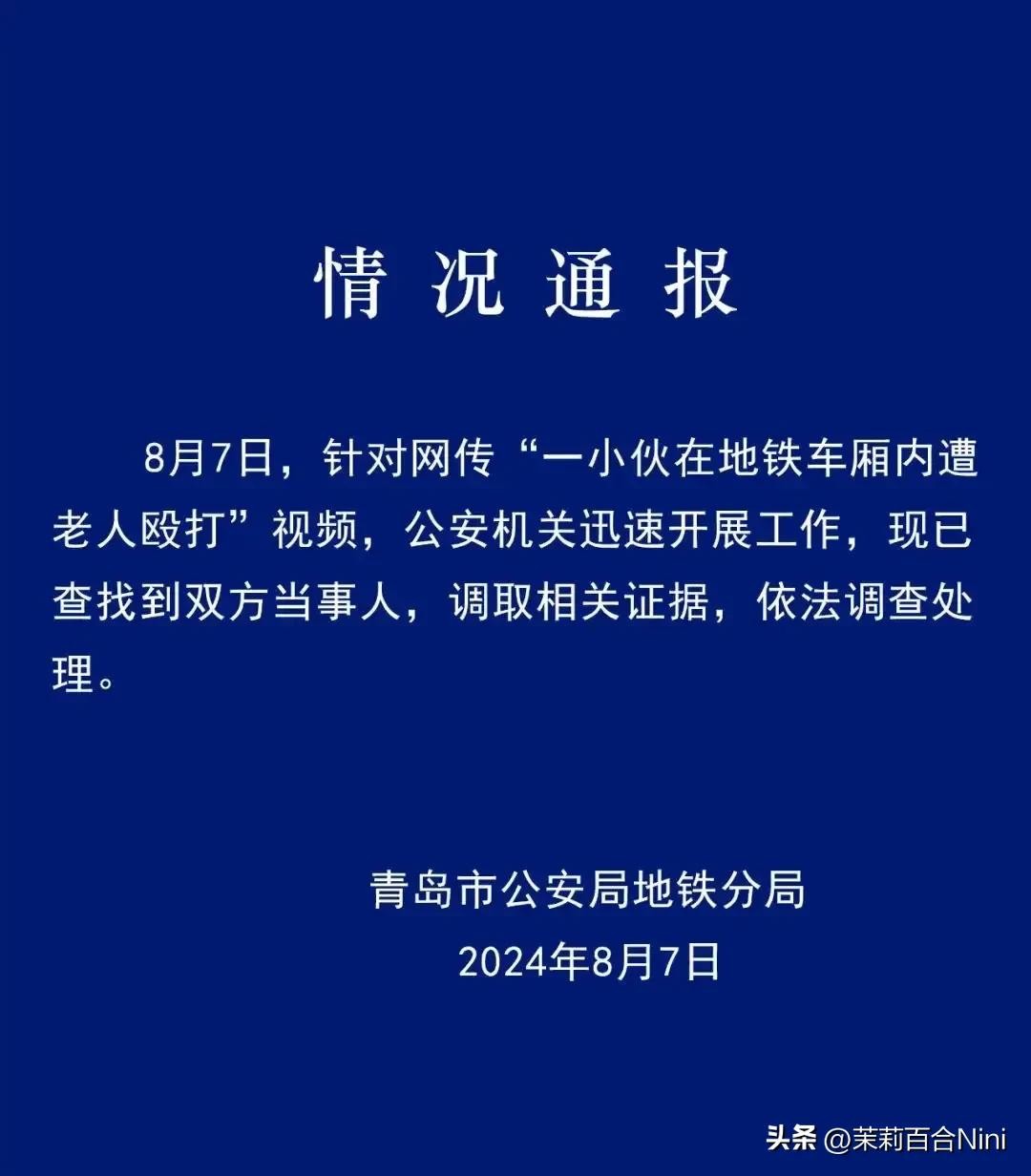 青岛地铁老人暴打小伙后续,小伙不还手原因曝光,警方通报来了。