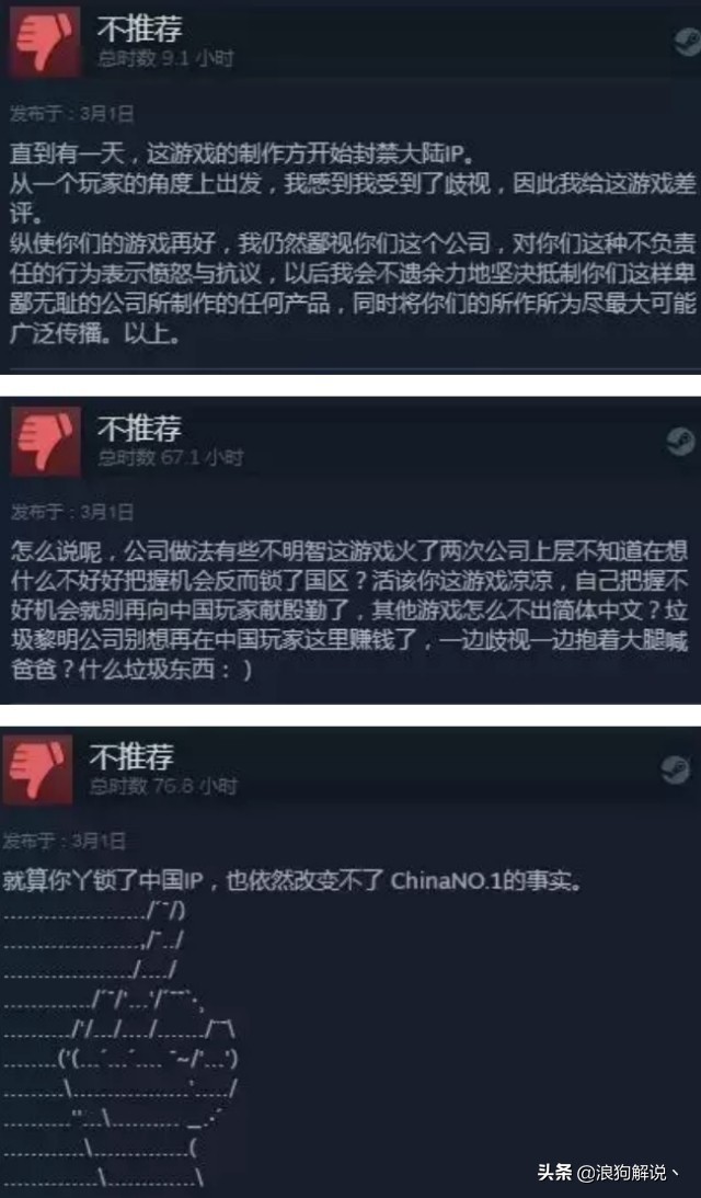 相反Steam上则收到了大量的差评,愤怒的中国玩家将怒火全部撒向了Steam的评论区 一时之间,H1Z1的评论区被中国玩家所刷屏。