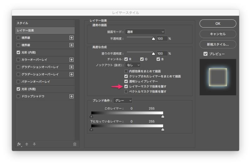 在图层效果设置中选中“使用图层蒙版隐藏效果”。然后,您可以使用遮罩用细的黑色画笔稍微减弱阴影侧的辉光。