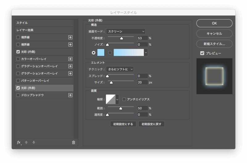 将带有灰色圆圈的图层应用到“外部发光”和“内部发光”。发光内外的模式选择屏幕或线性。