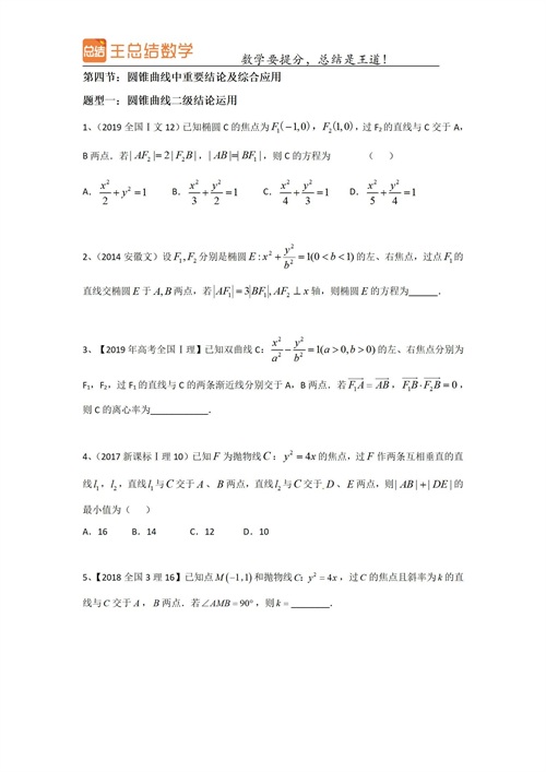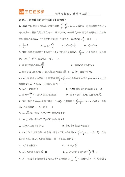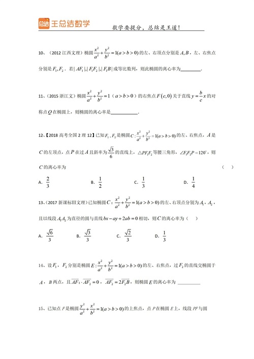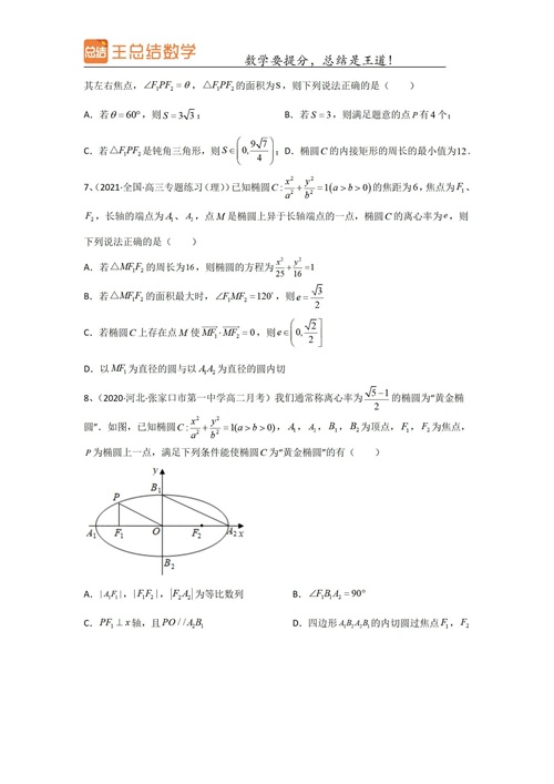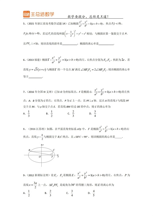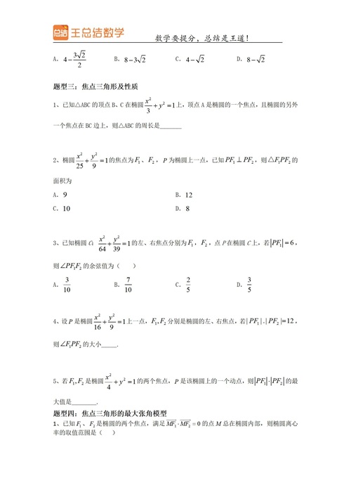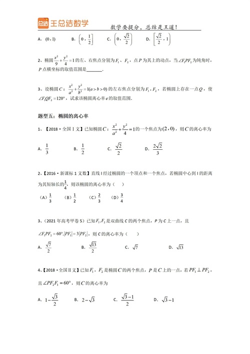 题型四:焦点三角形的最大张角模型;题型五:椭圆的离心率