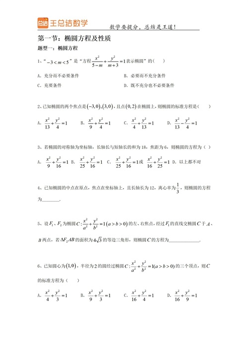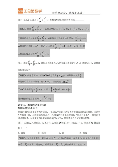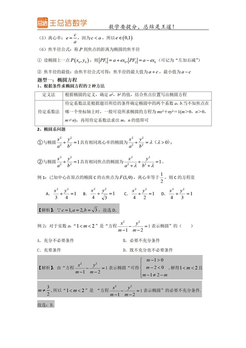 题型一:椭圆方程;题型二:椭圆的定义及应用;题型三:焦点三角形及性质