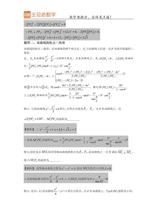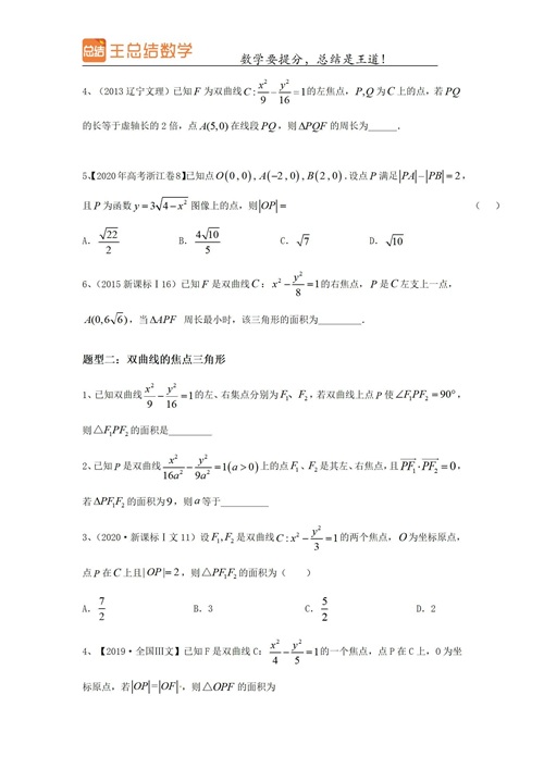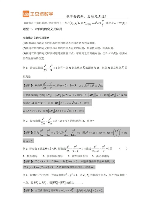 题型一:双曲线的定义及应用;题型二:双曲线的焦点三角形