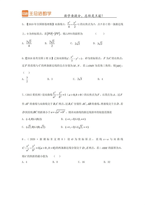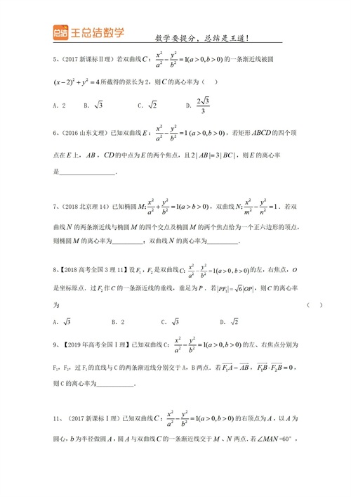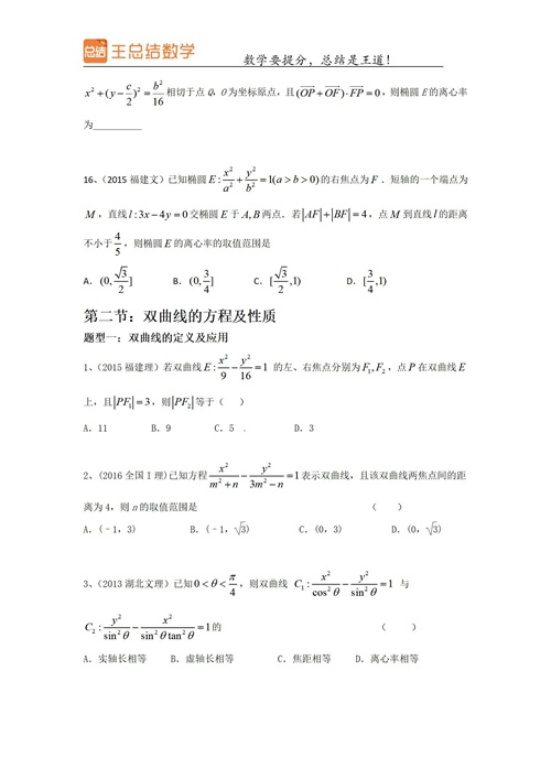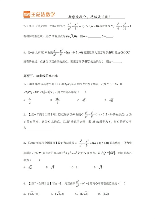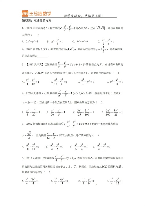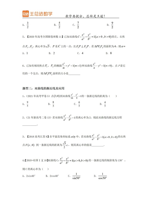 题型三:双曲线的渐近线及应用;题型四:双曲线的方程