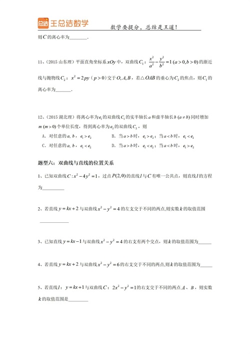 题型五:双曲线的离心率;题型六:双曲线与直线的位置关系