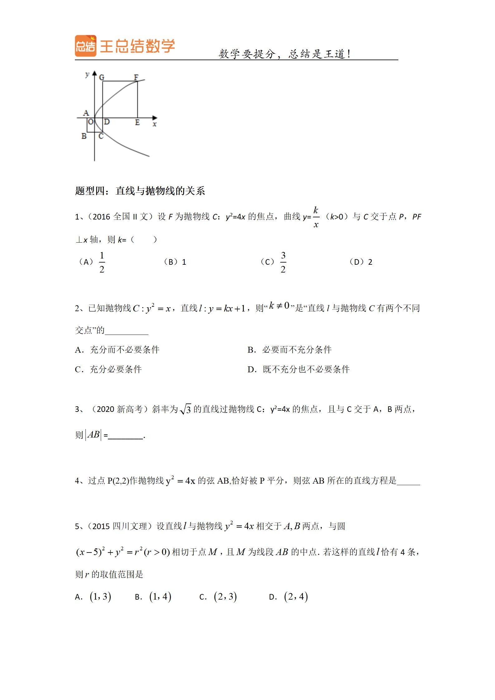 题型三:抛物线的几何性质运用;题型四:直线与抛物线的关系