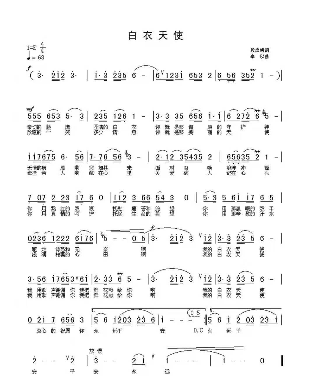 1月26日(初二),段启明又请首钢艺术团作曲家、中国音乐家协会会员李以紧急谱曲,1月27日(初三)中午将歌曲《白衣天使》发送给《人民网》,受到《人民网》有关领导的充分肯定,下午14:09分《人民网》以“致敬疫情前线医护人员!歌曲《白衣天使》出炉”为题发表,受到读者的喜欢和好评。同时紧急制作歌曲MP3小样唱片,1月29日(初五)上午7:26将制作好歌曲MP3小样传给人民政协报社,经编辑紧急制作,上午10:30在《人民政协报》公众号以“这首歌 献给战‘疫’一线的白衣天使们 ”为题发表。歌曲《白衣天使》一经发表2天时间近6000人阅读,受到广大读者的广泛好评,纷纷转发传递正能量。