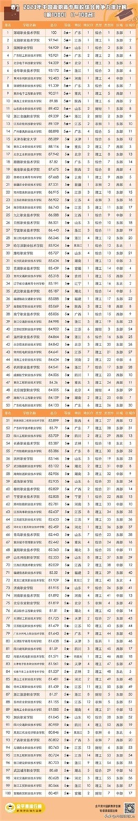 鉴于篇幅过长,摘选全国排名前一百名专科大学,全国专科大学排名2023最新排名如下: