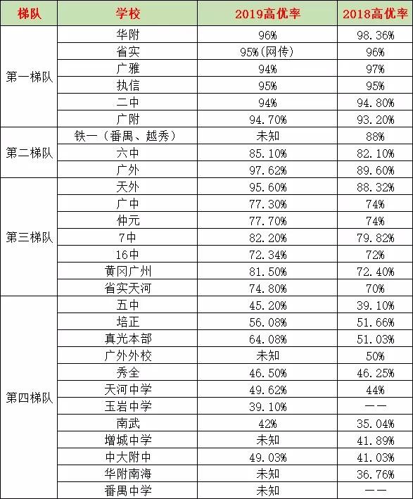 广州市高中的第一梯队6大名校分别是:华附、省实、二中、广雅、执信、广附。这6所高中今年的录取分数线都超过了690分