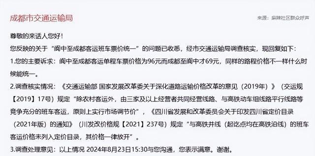 成都至阆中往返票价相差27元四川网民:为何同路不同价