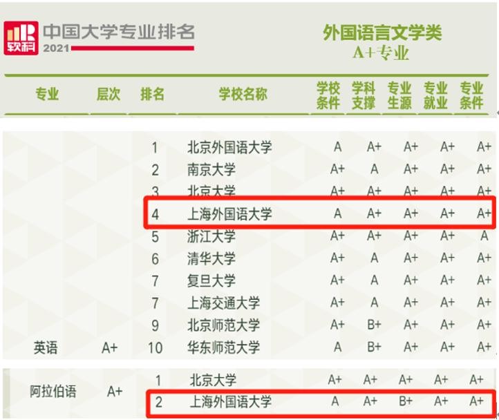 本文内容来自:上外招生、上海外国语大学官网、官微、软科