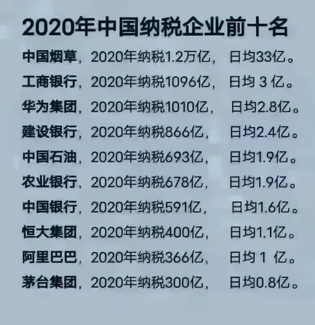 2020年税收排行榜:华为超4大央企排第三,8个省份税收养活全国