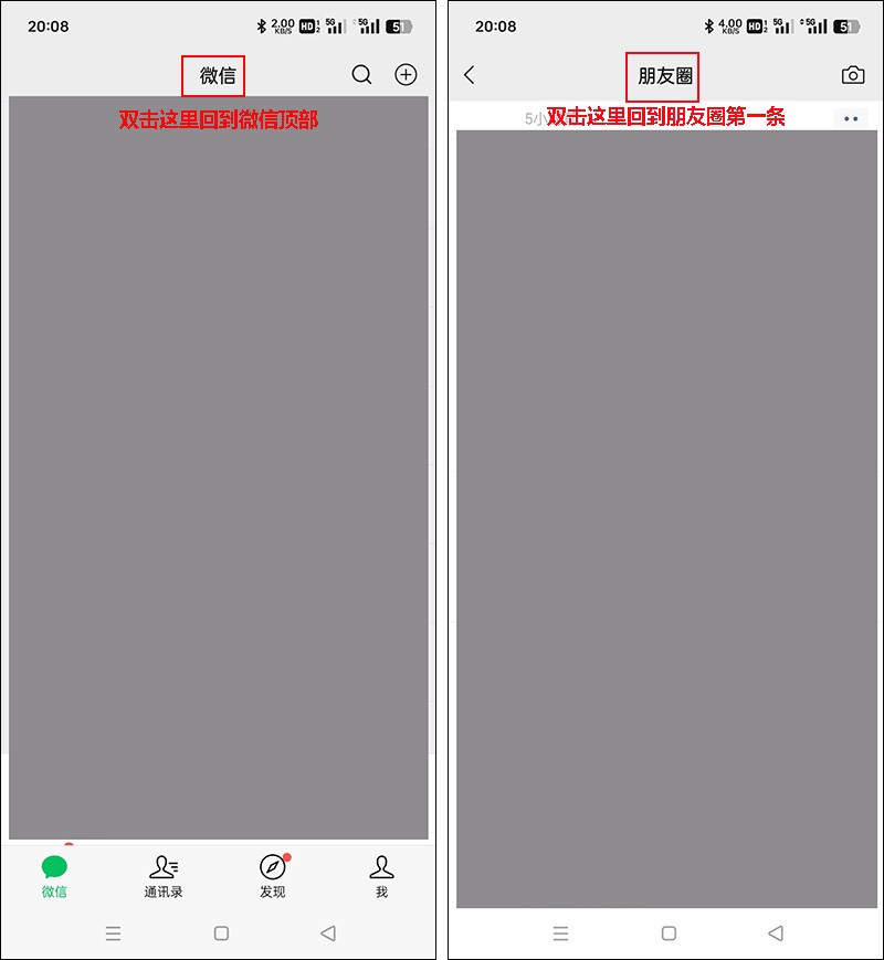 此外,这里再悄悄告诉大家,查看完未读消息后,想回到微信顶部,直接双击顶部的【微信】二字,就可以快速回到微信顶部,刷朋友圈也一样,往下刷了很久之后,想回到第一条的位置,直接双击顶部的【朋友圈】这几个字就会回到第一条了。