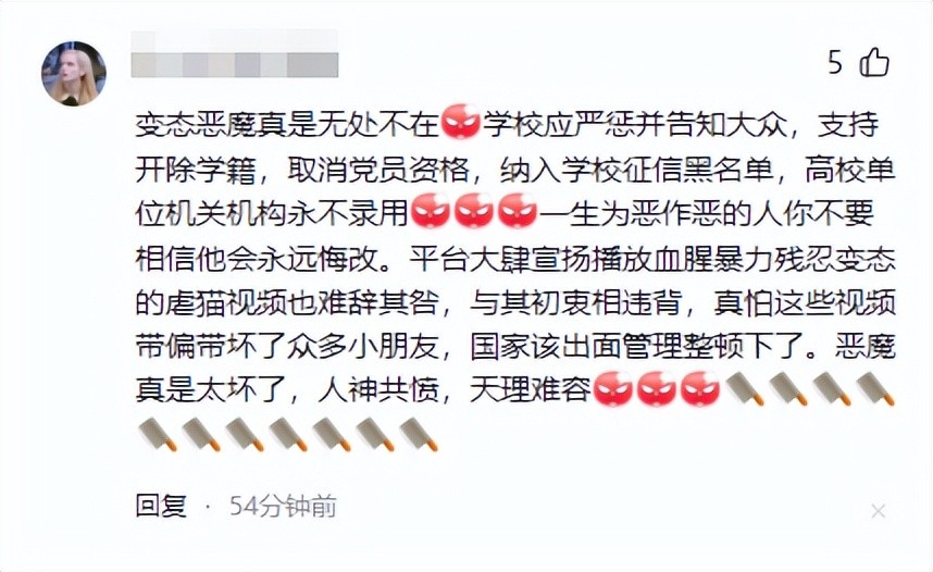 对于这样一个道德沦丧、嗜虐成性的人,很多网友直接要求以最严厉的处罚来惩治,甚至被开除也是罪有应得。