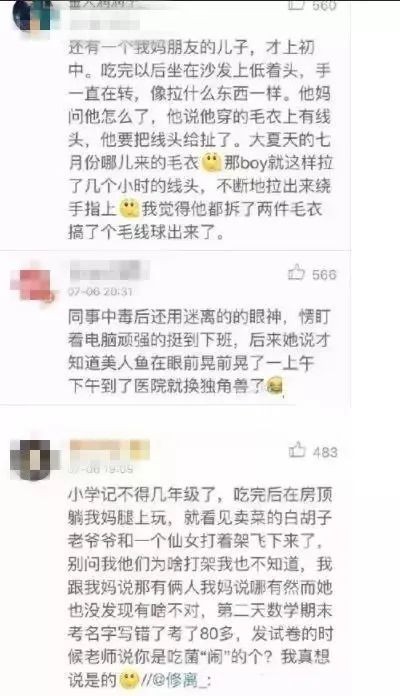 有人问为什么吃同类等量的蘑菇,有人会中毒,而有人不会?这又是不同人的耐受力不一样,每个受体不一样,自然反应出的结果就不一样。这就好比是每个人对药物的反应不一样。幻觉诱发物中毒一般潜状期短、发病快,约半小时至1小时左右发病。